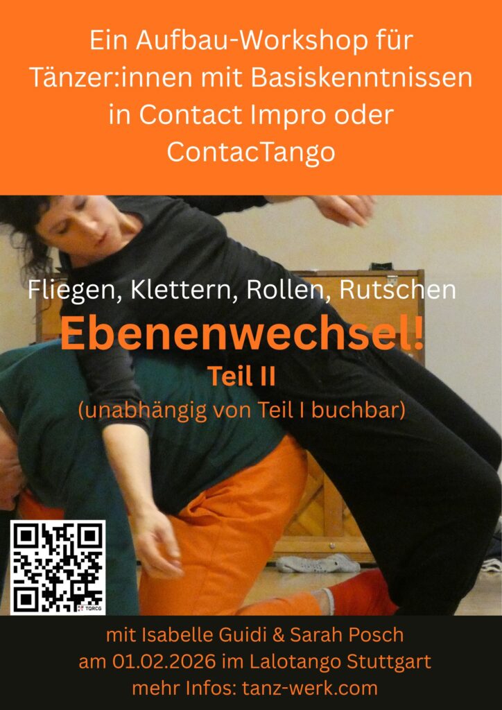 Dieser Workshop richtet sich an ContacTango- und Contact Impro-Tänzer*innen, die ihr Repertoire um spielerische Elemente und neue Bewegungsdimensionen erweitern möchten. Wenn du bereits erste Erfahrungen in Contact Improvisation (CI) oder ContacTango (CT) gesammelt hast, bist du hier genau richtig!